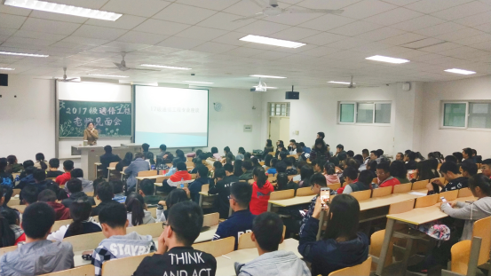 见面会由华翔老师主持,会议伊始,华老师首先介绍了到场的各位专业课老师,让同学们初步对老师们有个印象。随后,雷斌老师对大家进行专业问题的回答。从专业课的科数,到专业以后的就业前景,都极为详细的为我们做出了解答。结合当前社会背景、学科前沿、专业发展、就业前景等方面,为同学们的专业学习指明了方向。其次,其他几位老师从不同的方面对通信工程专业学习提出了很多建议。最后,两位学长和一位学姐上台为同学们讲述了他们的经历,并且提出了不少宝贵的方建议。经过将近两个小时的会议,此次通信工程专业老师与新生见面会圆满结束。