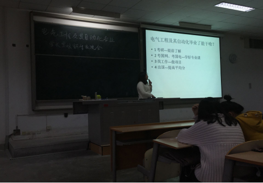 第二是考研篇,目前就读于西北工业大学的13级刘远学长分享了考研的经历,首先告诫大家要对自己有定位,对未来有规划,其次为大家分析了电气工程及其自动化专业毕业生可选择的各个方向,强调了修炼个人对考研的重要性。