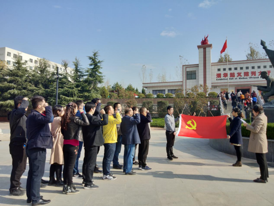 在讲解员带领下,大家深入学习渭华起义的始末,以及当时西北地区革命的整体态势。随后,观摩了先烈们留下的长20米、宽2米的砖铺大字:“同志们赶快踏着先烈的鲜血前进啊!”。最后,大家拜谒了渭华起义烈士纪念塔,默哀以缅怀先烈、表达哀思,并在参观结束后于纪念馆广场重温入党誓词。
