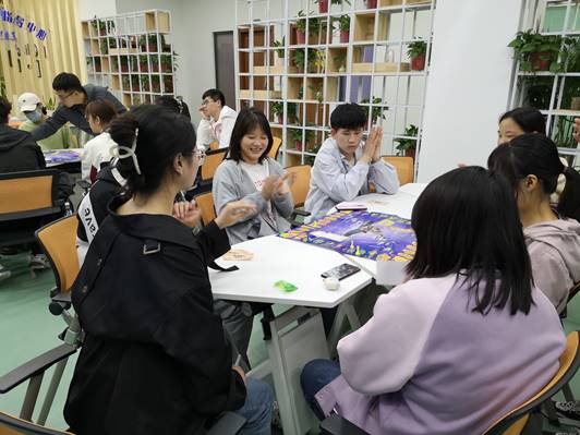 随后,潘老师请大家体会一段音乐,在音乐声的引导下,闭眼静心,体会自己的情绪,同时进一步讲解了情绪背后的意义,要接纳和正确表达我们的情绪。最后,介绍了“心灵魔法游戏”的游戏规则和要求,带领大家,分组进行“心灵魔法游戏”,相互分享自己的情绪小故事。整个活动气氛活跃,同学们积极参与。