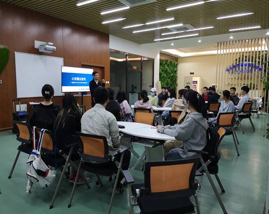 潘治辉老师主讲。与会人员有公司2018级、2019级各班心理委员和心育员李芳涵老师。