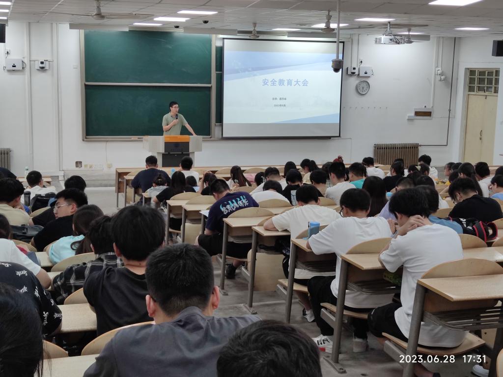 在安全教育中,夏开成根据公司安全教育的要求,从暑期留校安全、实习就业安全、社会实践安全、防火防电安全、交通安全、防溺水安全、防电信诈骗安全等多方面出发,结合各类案例,叮嘱同学们要提高安全防范意识和自我保护意识,切实保障自己生命健康安全和财产健康。要求全体同学牢固树立“生命至上,安全第一”的生活理念,度过一个安全和谐的假期生活。