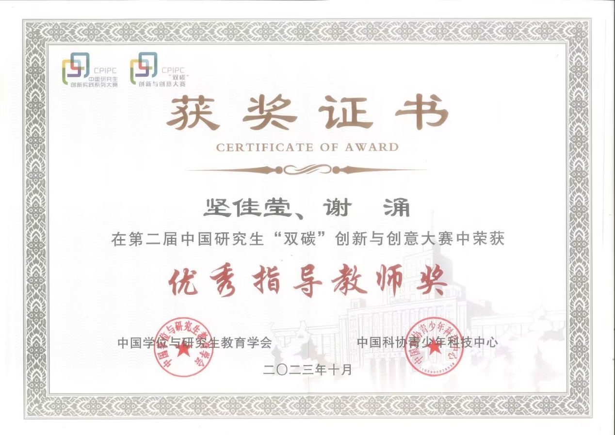 公司教师坚佳莹指导的研究生王星晨、材料与化工公司研究生董芃凡、高书刊、李靖筠、耿铭涛、苗晨完成的《绿色存储——超低功耗阻变存储器全球领航者》项目荣获一等奖。同时,坚佳莹副教授荣获“优秀指导教师”称号。